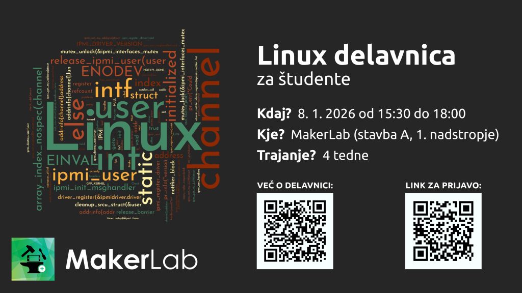 Na praktični delavnici se boš naučil osnov dela z Linuxom, uporabe ukazne vrstice, upravljanja sistema in orodij, ki se uporabljajo v industriji.