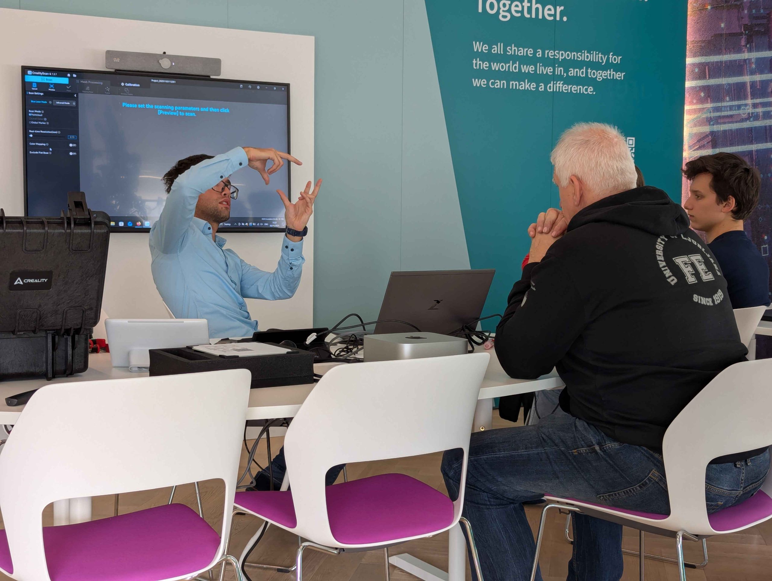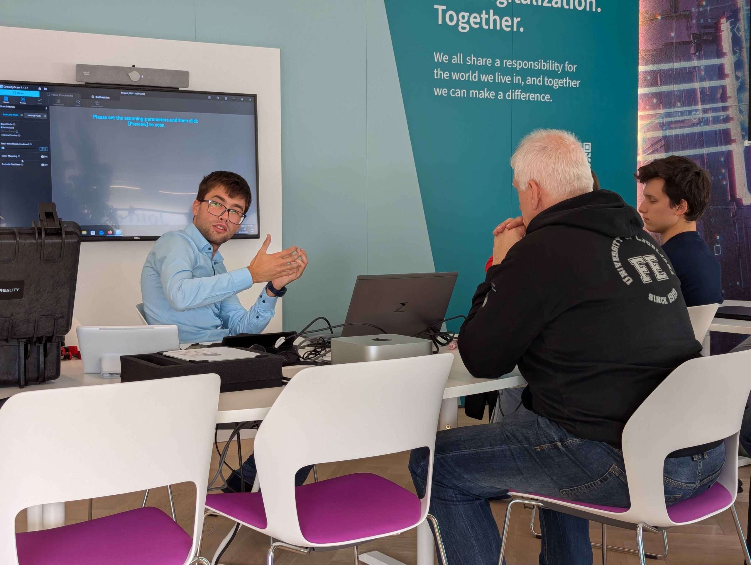 Študenti so se spoznali z osnovami 3D skeniranja z uporabo industrijskega Creality CR-Scan Raptor skenerja in uspešno poskenirali računalniško miško: